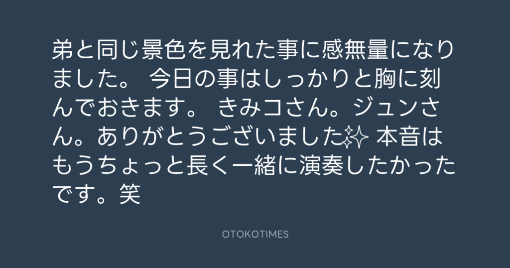 弟と同じ景色を見れた事に感無量になりました。 今日の事はしっかりと胸に刻んでお... -
