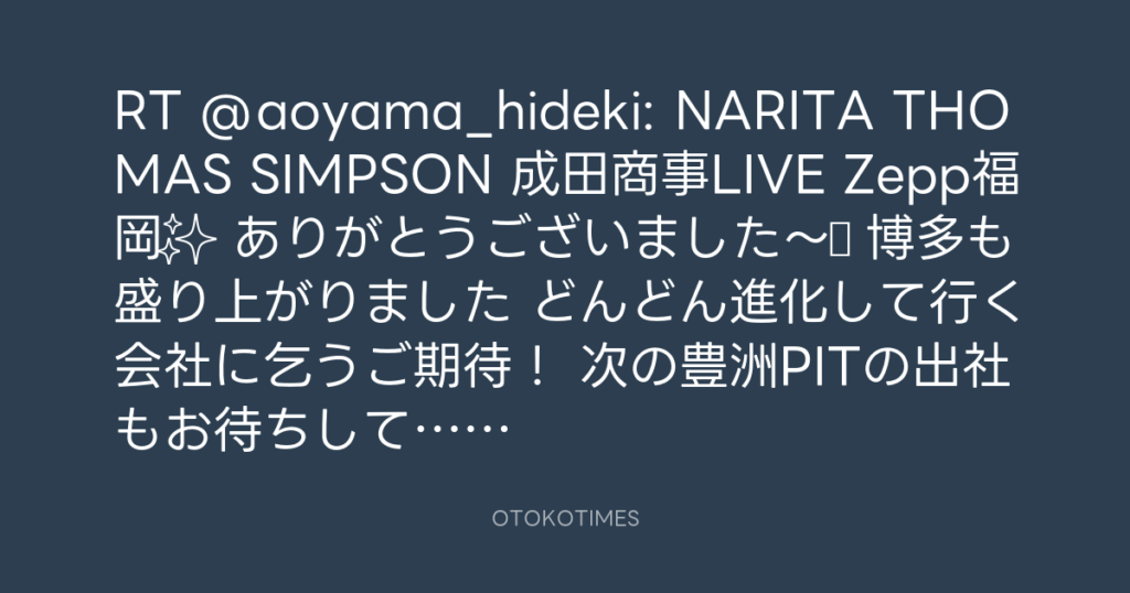 RT @aoyama_hideki: NARITA THOMAS SIMPSON 成田商事LIVE Zepp福岡✨ ありがとうご...