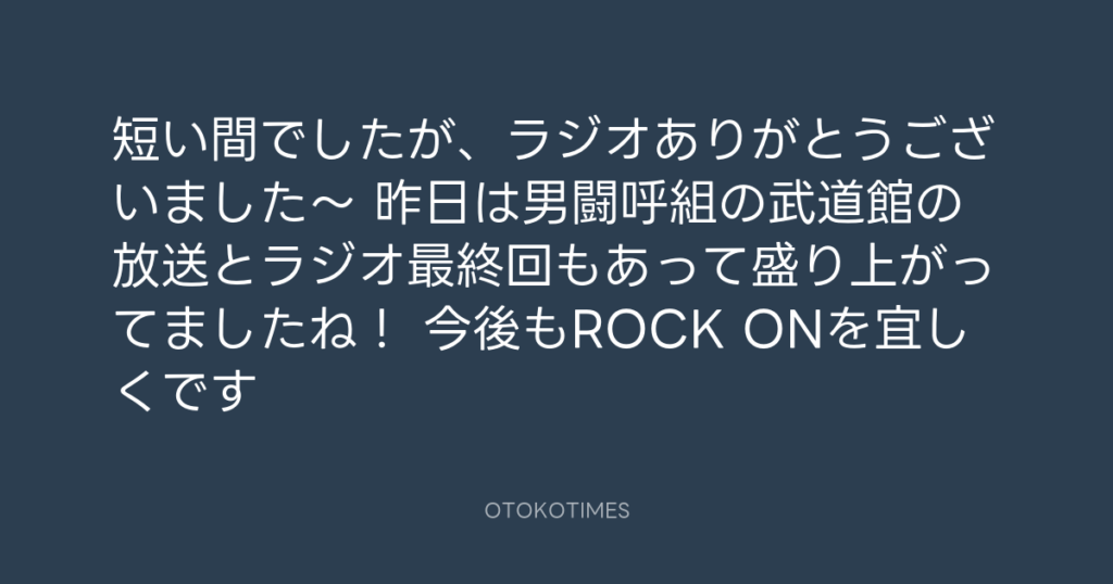 短い間でしたが、ラジオありがとうございました〜🥲 昨日は男闘呼組の武道館の放送... -