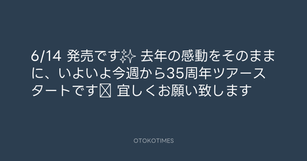 6/14 発売です✨ 去年の感動をそのままに、いよいよ今週から35周年ツアースタート... -