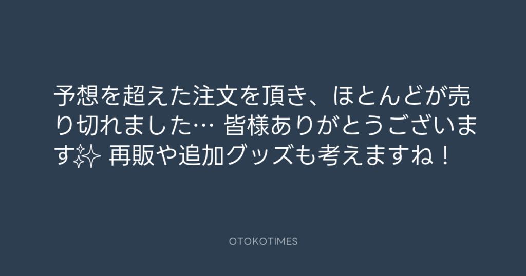 予想を超えた注文を頂き、ほとんどが売り切れました…🥲 皆様ありがとうございます... -