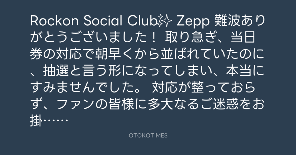 Rockon Social Club✨ Zepp 難波ありがとうございました! 取り急ぎ、当日券の対応... -