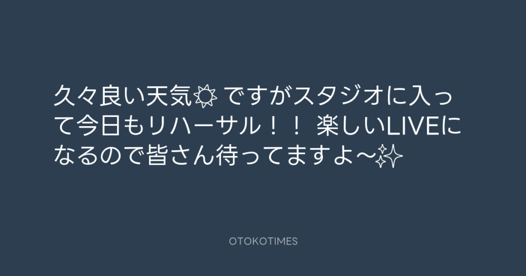 久々良い天気☀️ ですがスタジオに入って今日もリハーサル!! 楽しいLIVEになるの... -