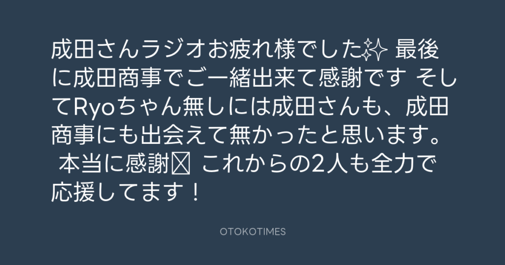 成田さんラジオお疲れ様でした✨ 最後に成田商事でご一緒出来て感謝です🥲 そしてR... -