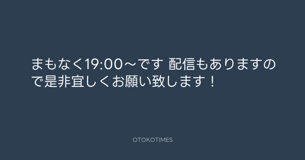 まもなく19:00〜です👍 配信もありますので是非宜しくお願い致します! -