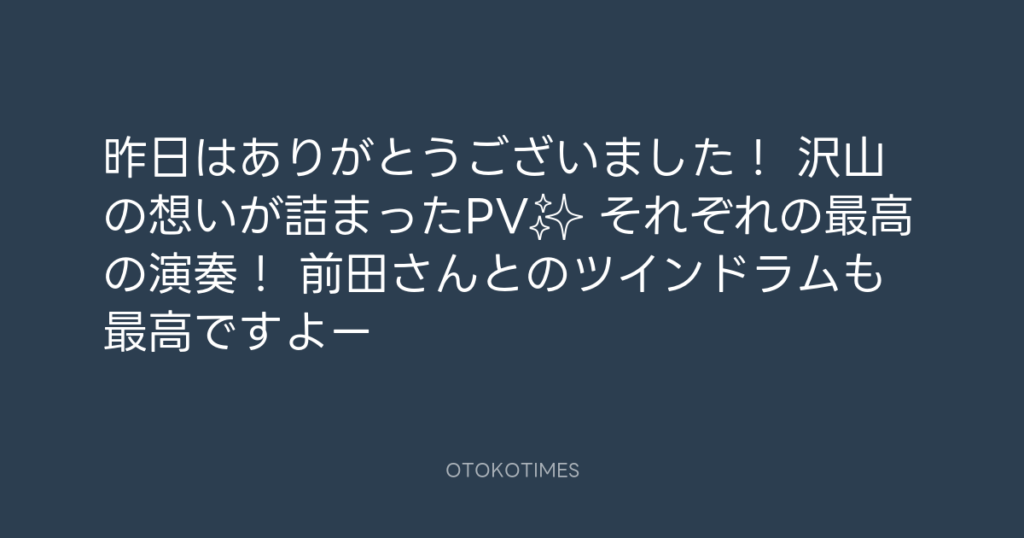昨日はありがとうございました! 沢山の想いが詰まったPV✨ それぞれの最高の演奏... -