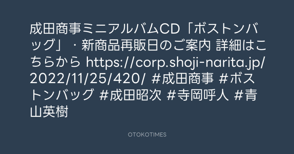 成田商事ミニアルバムCD「ボストンバッグ」・新商品再販日のご案内 詳細はこちらか... -