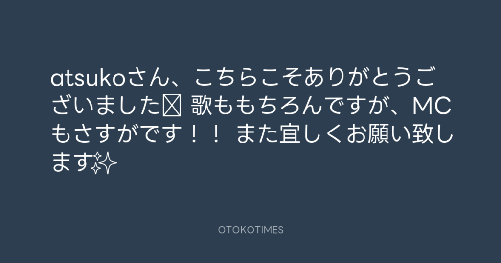 atsukoさん、こちらこそありがとうございました‼️ 歌ももちろんですが、MCもさすが... -
