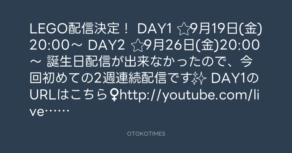 LEGO配信決定! DAY1 ⭐️9月19日(金)20:00〜 DAY2 ⭐️9月26日(金)20:00〜 誕生日配... -