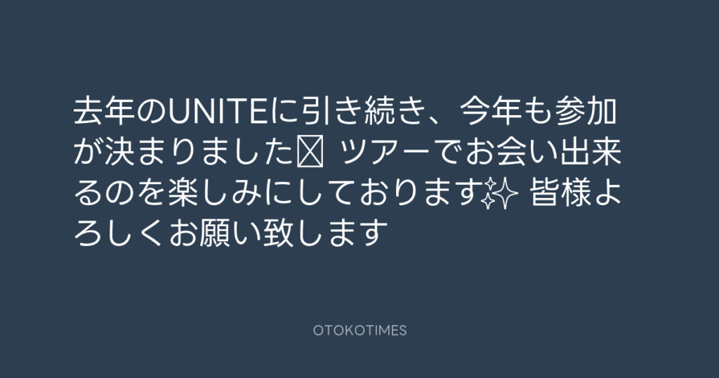 去年のUNITEに引き続き、今年も参加が決まりました‼️ ツアーでお会い出来るのを楽... -