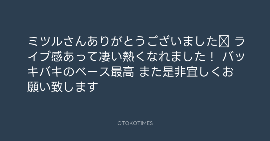 ミツルさんありがとうございました‼️ ライブ感あって凄い熱くなれました! バッキ... -
