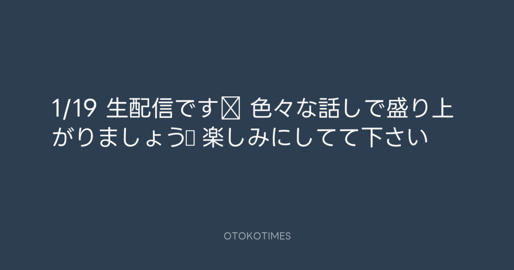 1/19 生配信です‼️ 色々な話しで盛り上がりましょう♪ 楽しみにしてて下さい👍 -