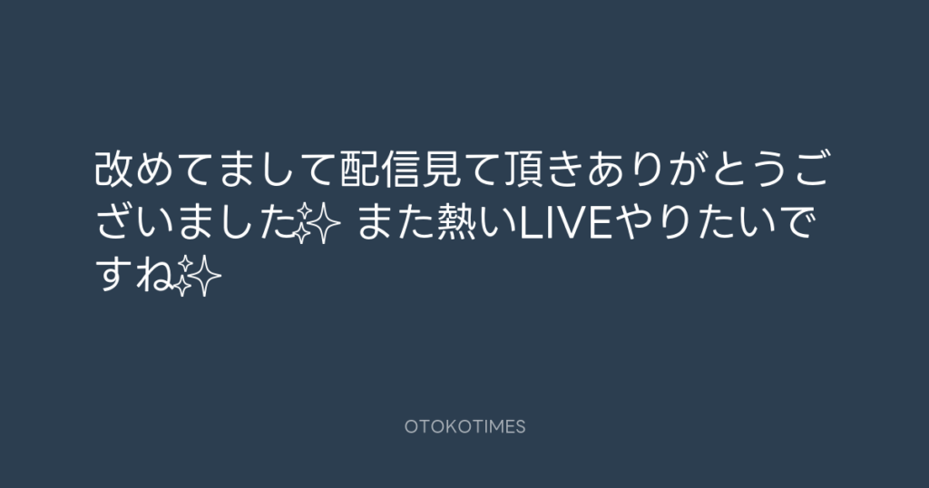 改めてまして配信見て頂きありがとうございました✨ また熱いLIVEやりたいですね✨ -