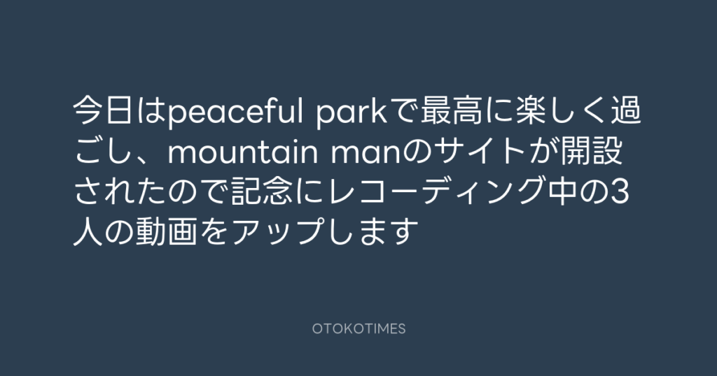 今日はpeaceful parkで最高に楽しく過ごし、mountain manのサイトが開設されたので... -