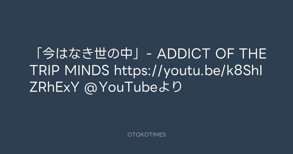 「今はなき世の中」- ADDICT OF THE TRIP MINDS https://youtu.be/k8ShIZRhExY @Yo... -