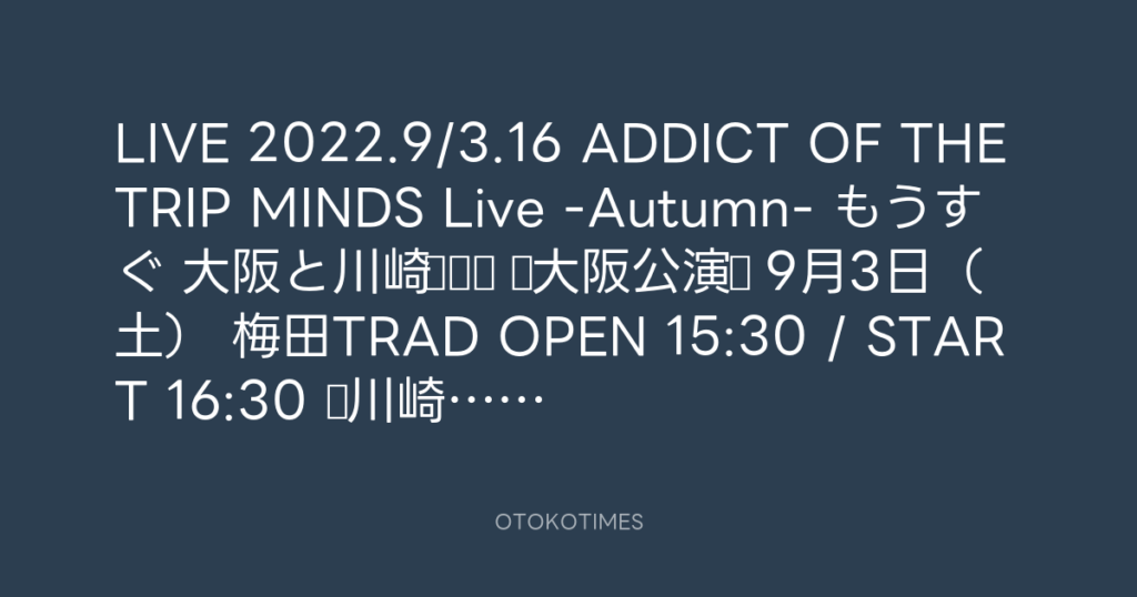 LIVE 2022.9/3.16 ADDICT OF THE TRIP MINDS Live -Autumn- もうすぐ 大阪と川崎♪♪... -