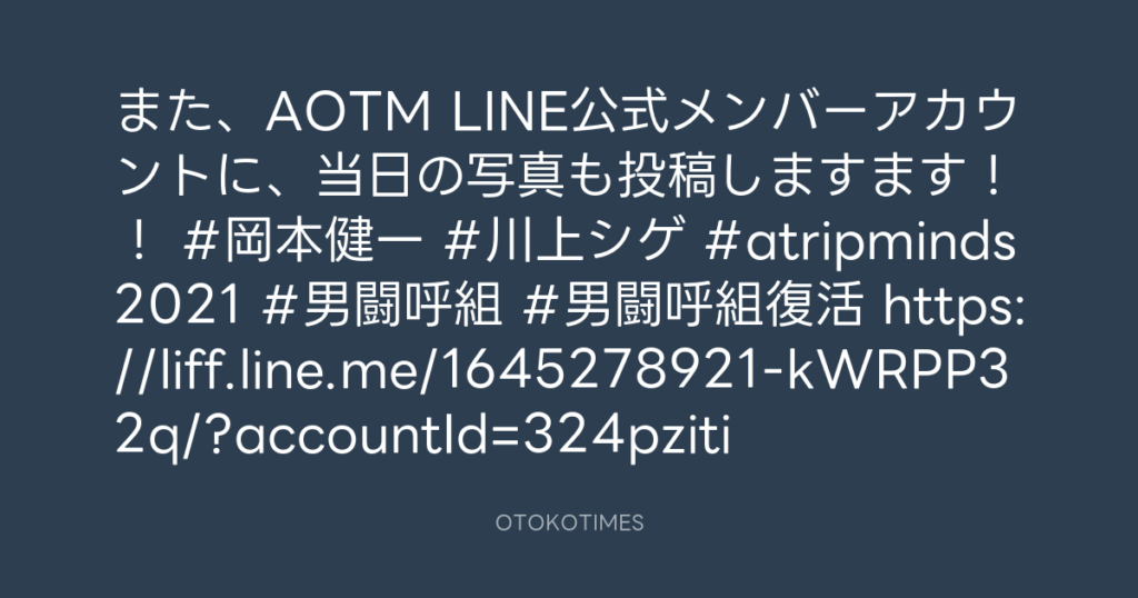 また、AOTM LINE公式メンバーアカウントに、当日の写真も投稿しますます!! #岡本... -