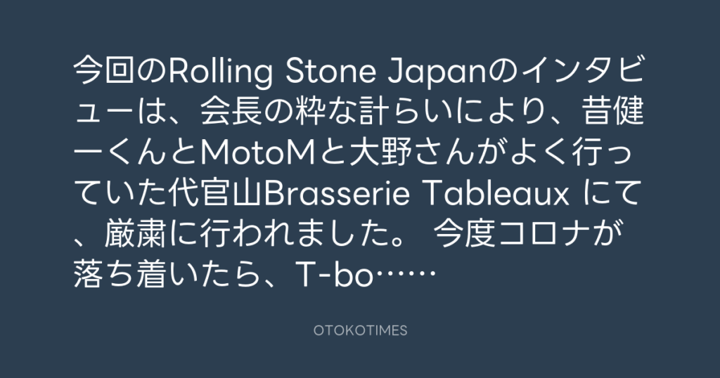 今回のRolling Stone Japanのインタビューは、会長の粋な計らいにより、昔健一くん... -