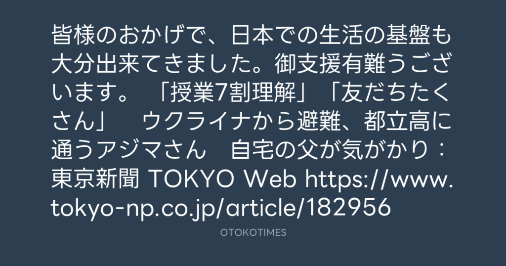 皆様のおかげで、日本での生活の基盤も大分出来てきました。御支援有難うございま... -