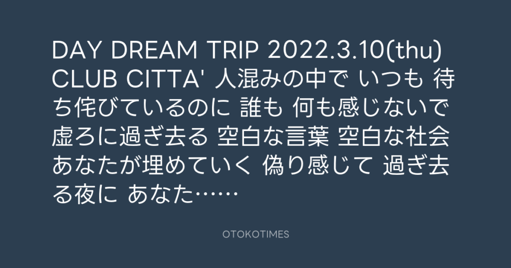 DAY DREAM TRIP 2022.3.10(thu) CLUB CITTA' 人混みの中で いつも 待ち侘びている... -