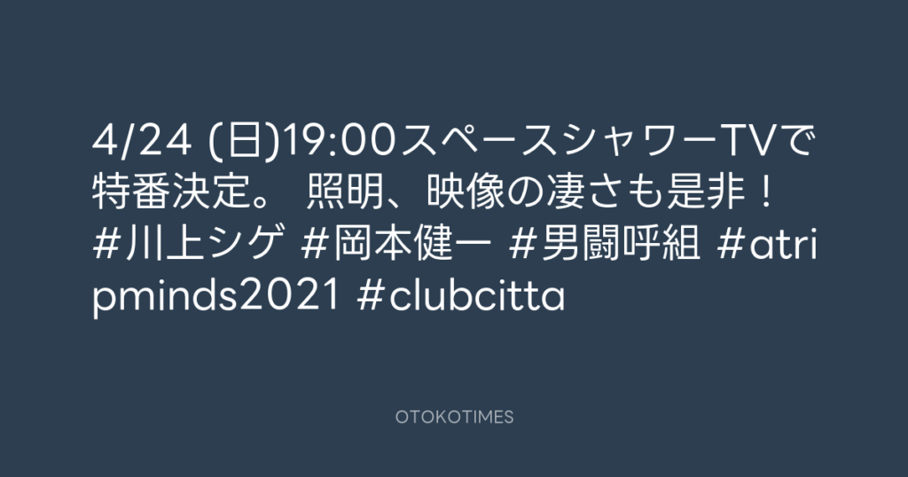 4/24 (日)19:00スペースシャワーTVで特番決定。 照明、映像の凄さも是非! #川上シ... -