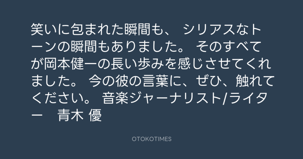 笑いに包まれた瞬間も、 シリアスなトーンの瞬間もありました。 そのすべてが岡本... -