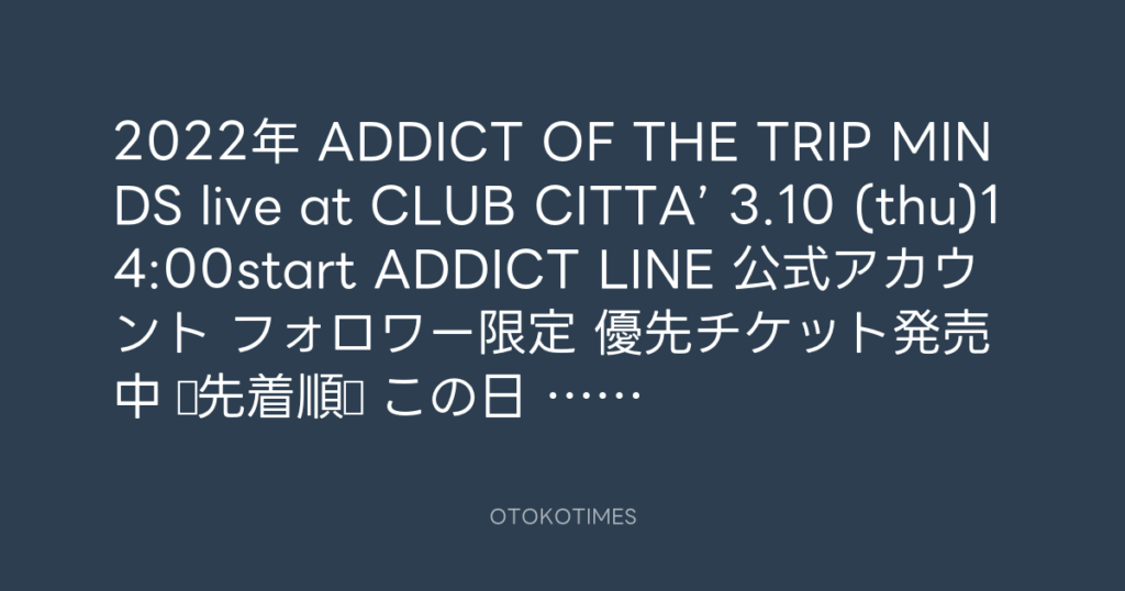 2022年 ADDICT OF THE TRIP MINDS live at CLUB CITTA’ 3.10 (thu)14:00start ADDI...
