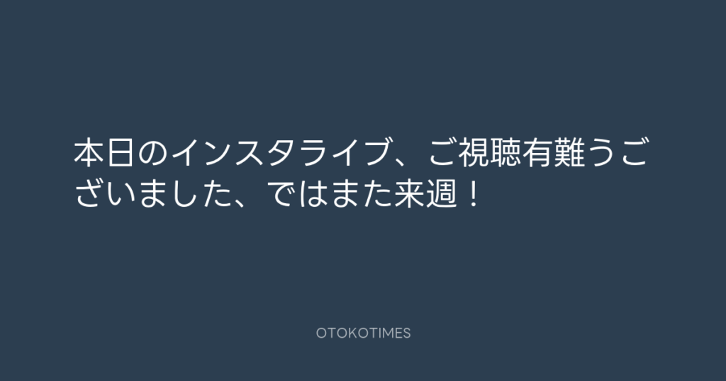 本日のインスタライブ、ご視聴有難うございました、ではまた来週! -