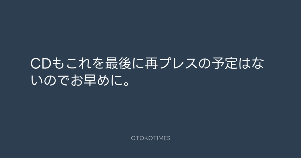 CDもこれを最後に再プレスの予定はないのでお早めに。 -