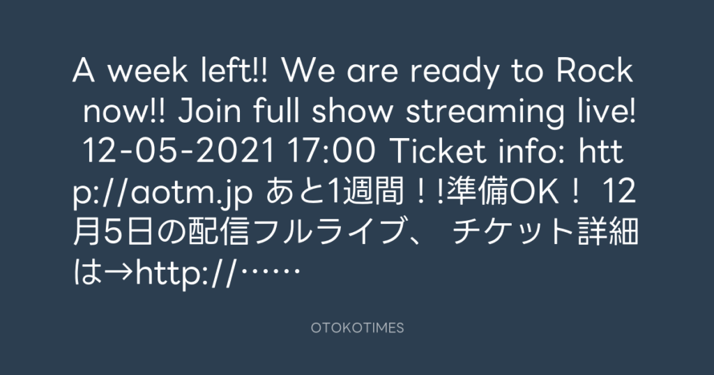 12月5日の配信フルライブ、チケット詳細は→http://aotm.jp Also join full show st... -