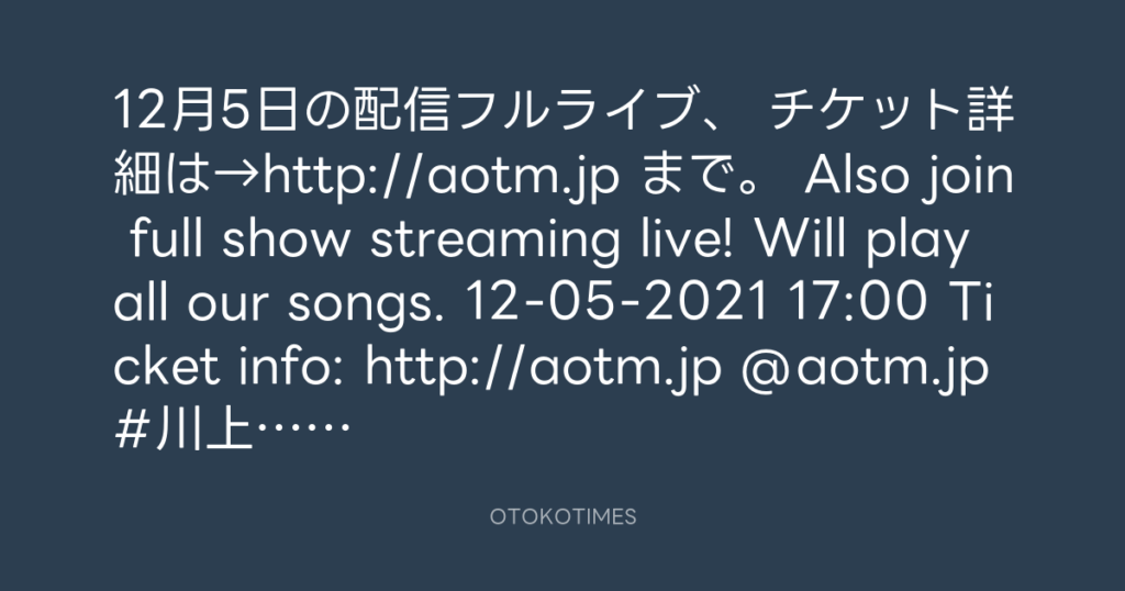 2021 12/5(sun) streaming ticket on sale now ♪ ★aotm.jp★ ★okamotokenichi.com★ ... -