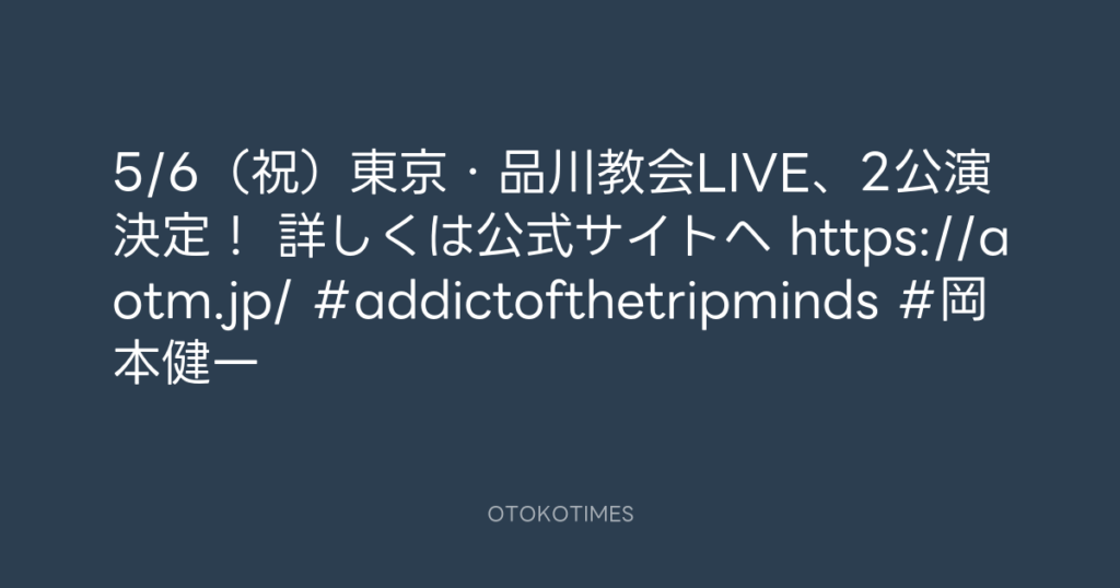5/6(祝)東京・品川教会LIVE、2公演決定! 詳しくは公式サイトヘ https://aotm.jp... -