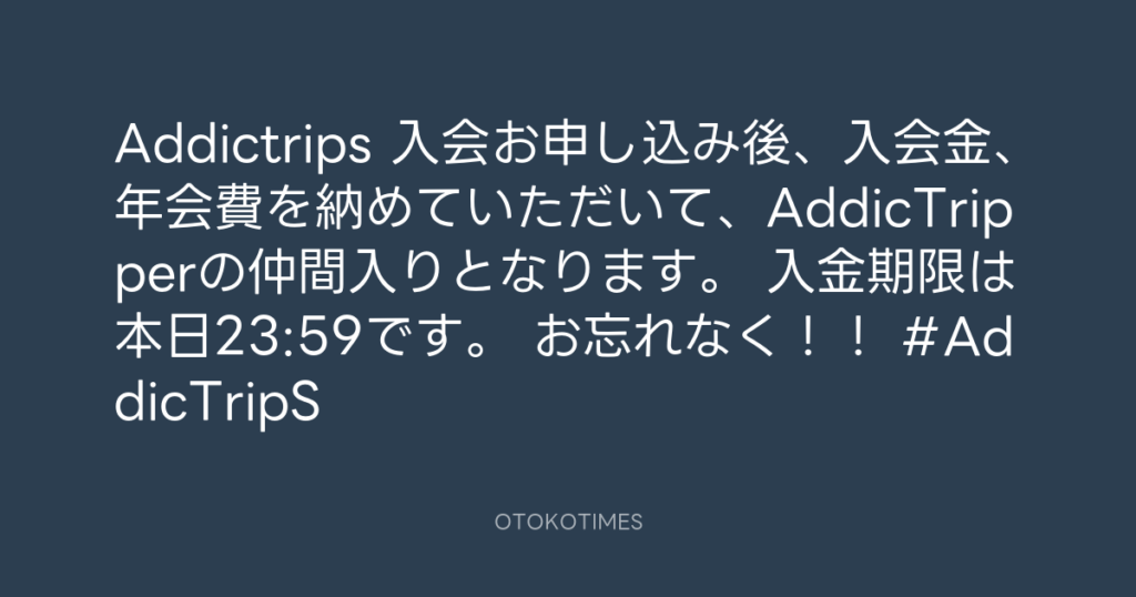 Addictrips 入会お申し込み後、入会金、年会費を納めていただいて、AddicTripperの... -
