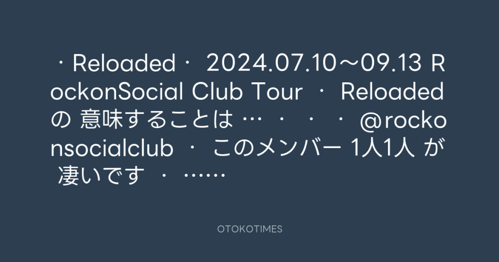・Reloaded・ 2024.07.10〜09.13 RockonSocial Club Tour ・ Reloadedの 意味する... -