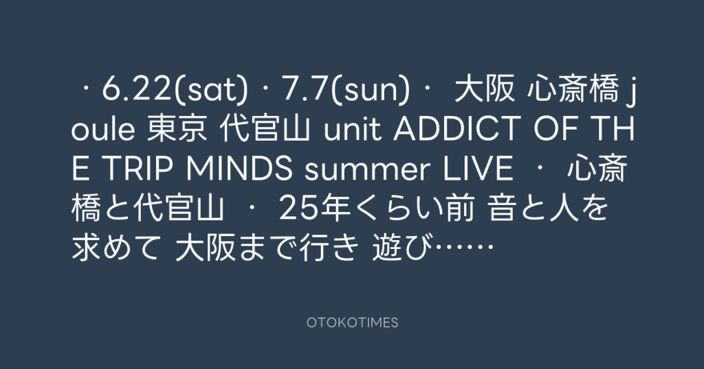 ・6.22(sat)・7.7(sun)・ 大阪 心斎橋 joule 東京 代官山 unit ADDICT OF THE TRIP... -