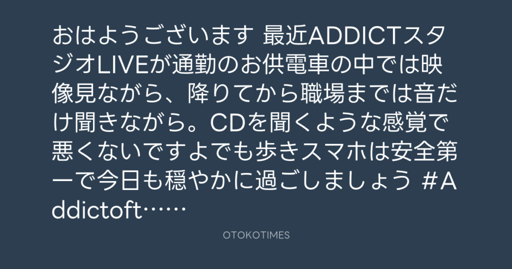 おはようございます😊 最近ADDICTスタジオLIVEが通勤のお供🤗電車の中では映像見な... -