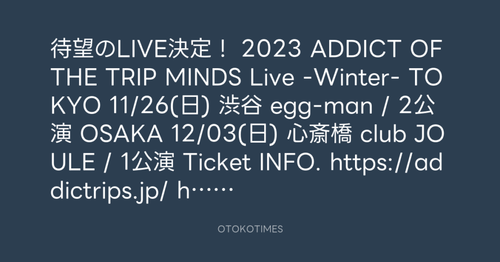 待望のLIVE決定! 2023 ADDICT OF THE TRIP MINDS Live -Winter- TOKYO 11/26(日) ... -