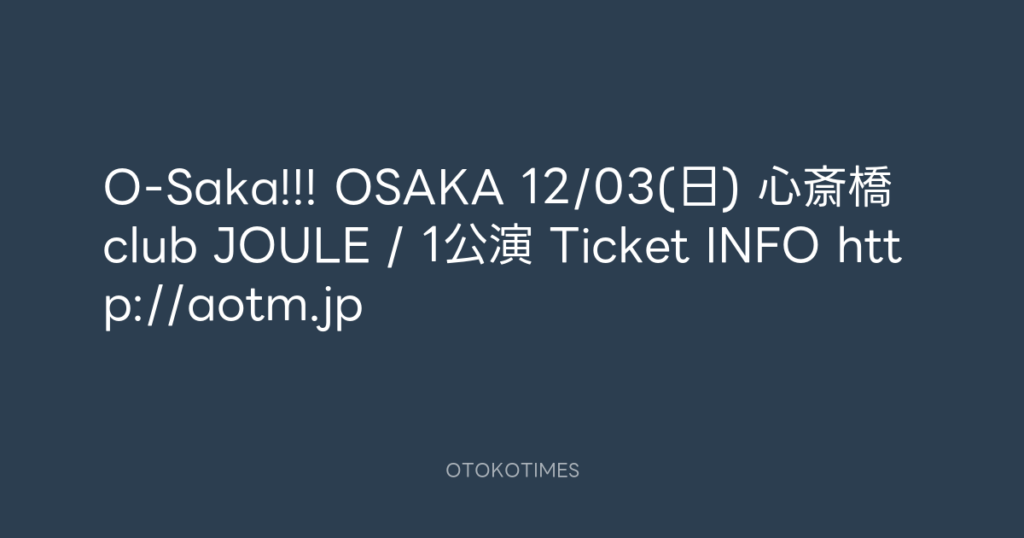 O-Saka!!! OSAKA 12/03(日) 心斎橋 club JOULE / 1公演 Ticket INFO http://aotm.jp -