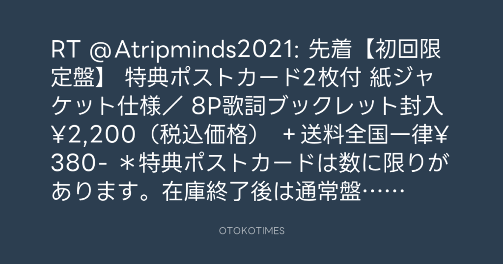 RT @Atripminds2021: 先着【初回限定盤】 特典ポストカード2枚付 紙ジャケット仕様...