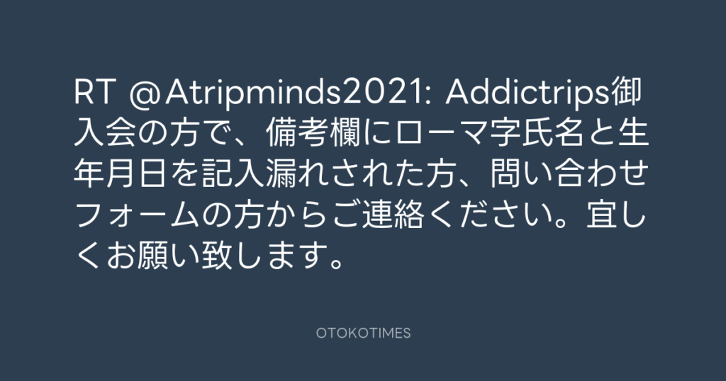 RT @Atripminds2021: Addictrips御入会の方で、備考欄にローマ字氏名と生年月日を... -