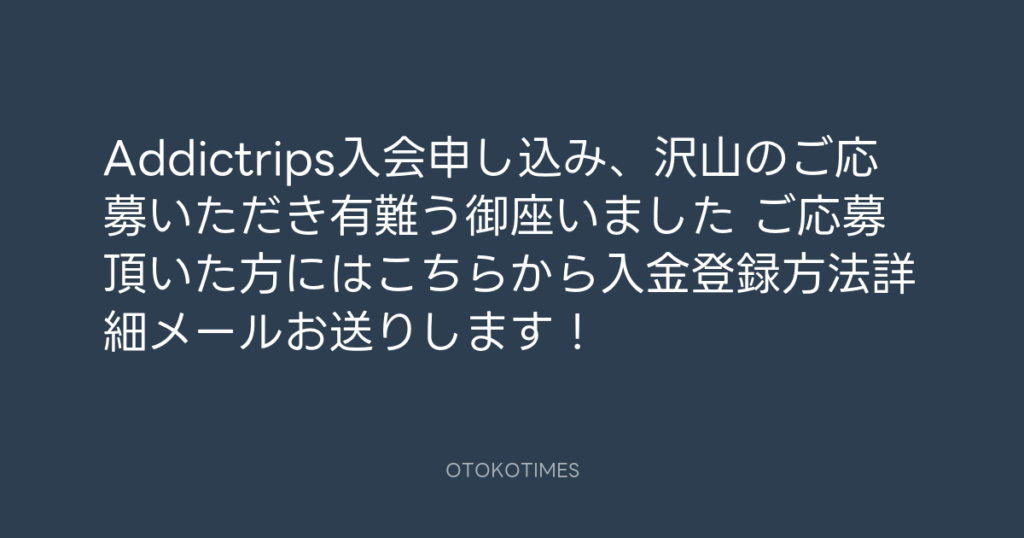 Addictrips入会申し込み、沢山のご応募いただき有難う御座いました🙏 ご応募頂いた... -