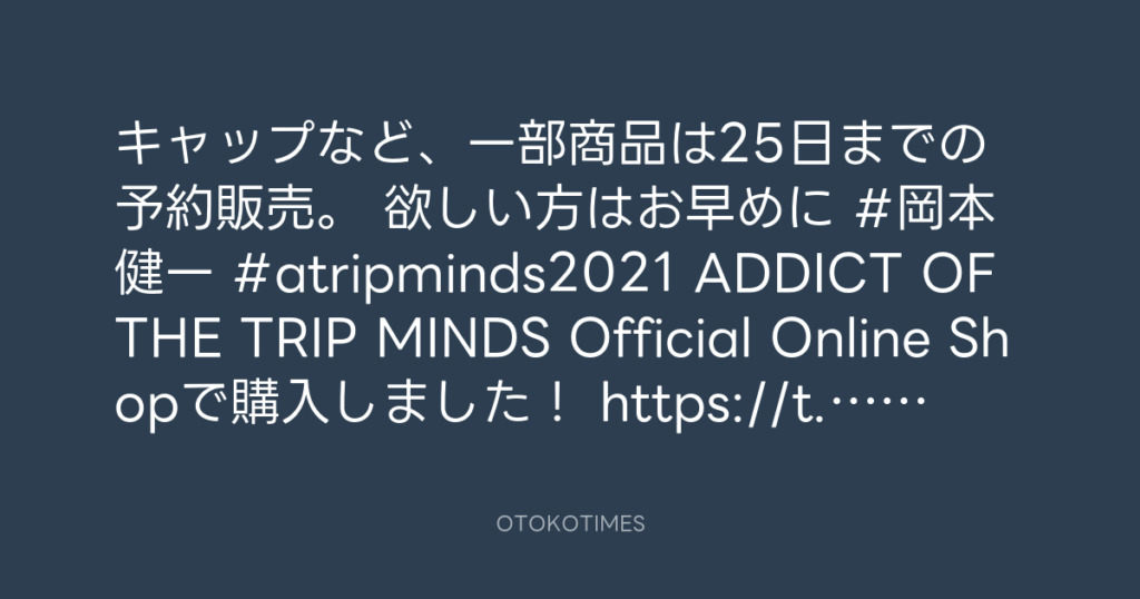 キャップなど、一部商品は25日までの予約販売。 欲しい方はお早めに😉 #岡本健一 #... -