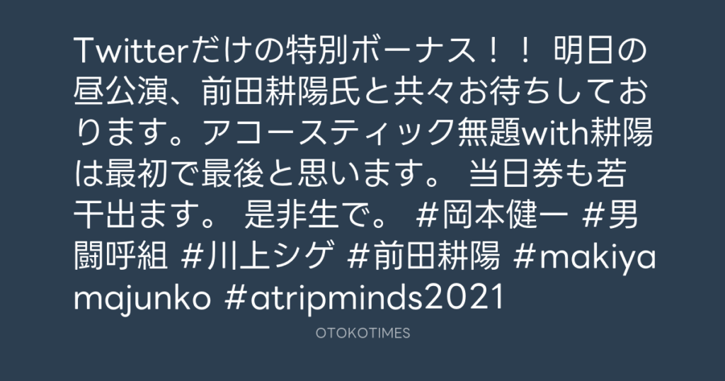 RT @Atripminds2021: 当日券あります! #岡本健一 #前田耕陽 #男闘呼組 -