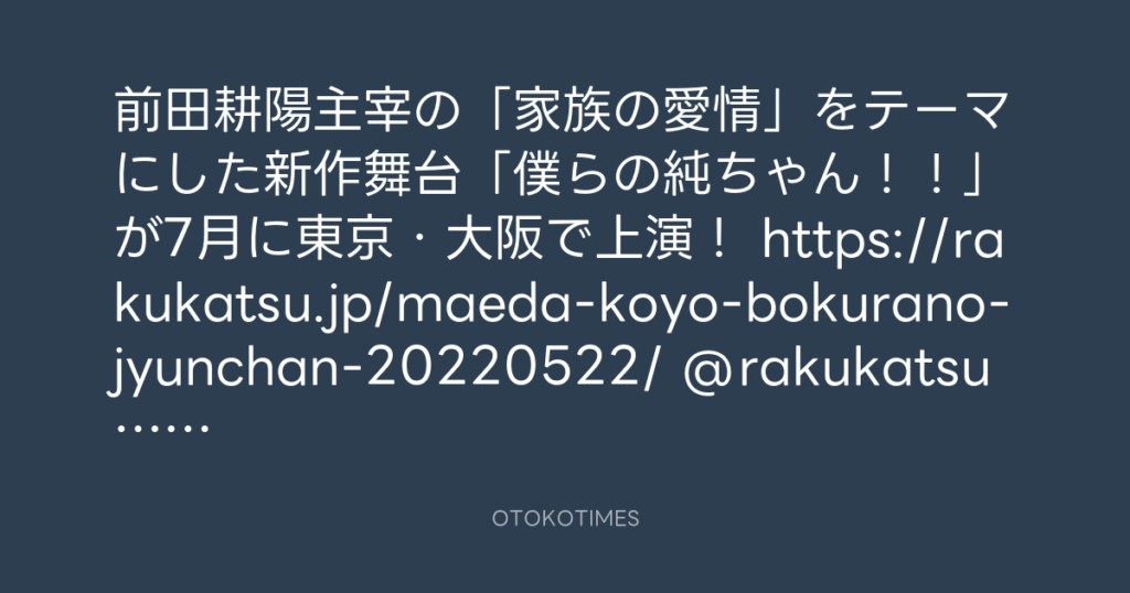 前田耕陽主宰の「家族の愛情」をテーマにした新作舞台「僕らの純ちゃん!!」が7月... -