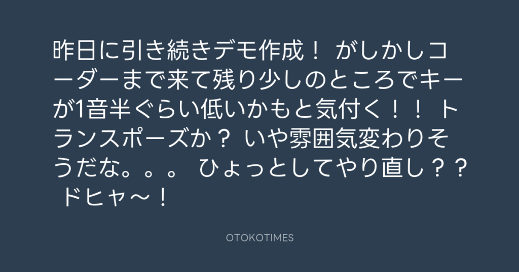 昨日に引き続きデモ作成! がしかしコーダーまで来て残り少しのところでキーが1音... -