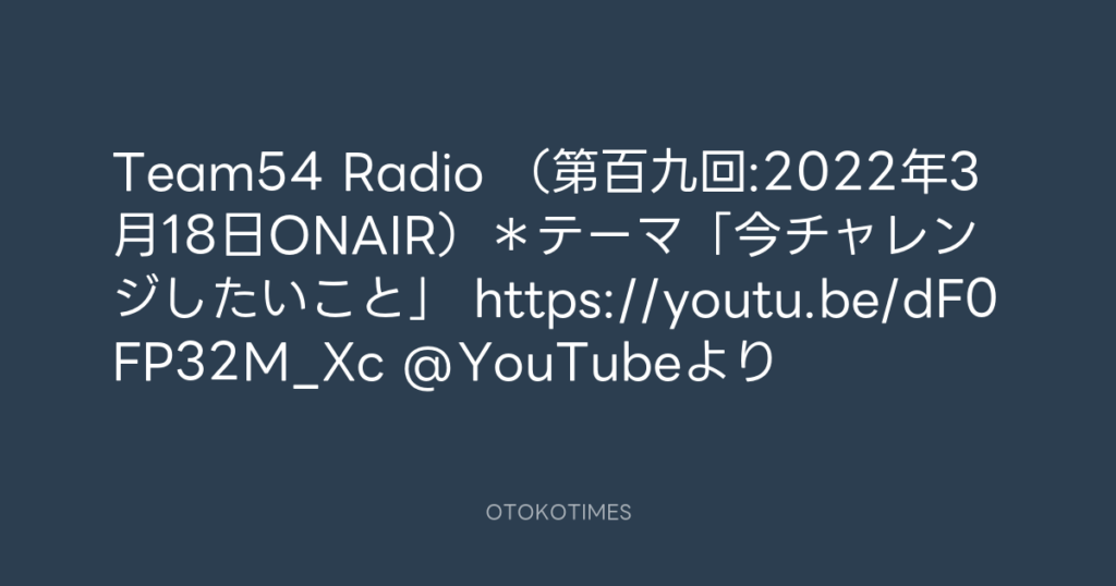 Team54 Radio (第百九回:2022年3月18日ONAIR)*テーマ「今チャレンジしたいこと... -