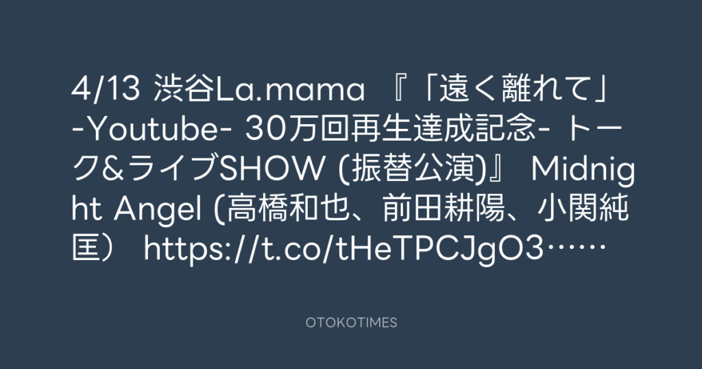 4/13 渋谷La.mama 『「遠く離れて」-Youtube- 30万回再生達成記念- トーク&ラ... -