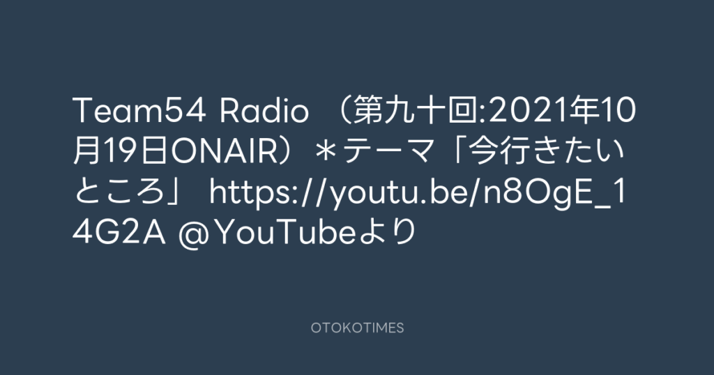 Team54 Radio (第九十回:2021年10月19日ONAIR)*テーマ「今行きたいところ」 htt... -