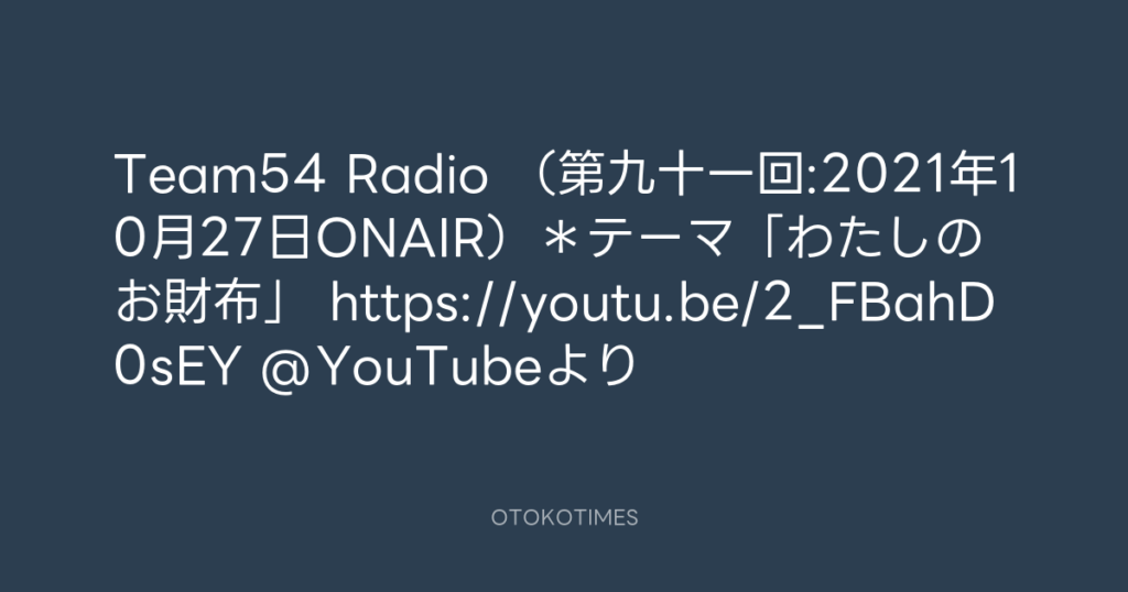 Team54 Radio (第九十一回:2021年10月27日ONAIR)*テーマ「わたしのお財布」 htt... -