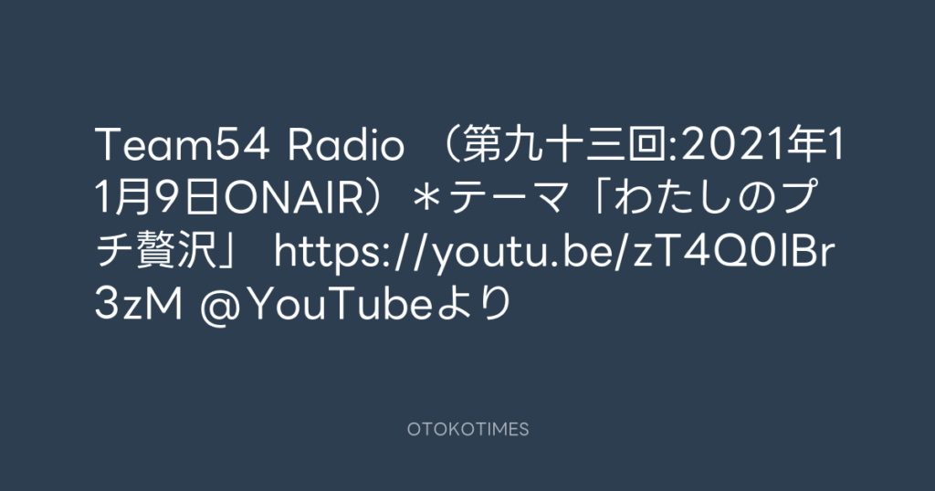 Team54 Radio (第九十三回:2021年11月9日ONAIR)*テーマ「わたしのプチ贅沢」 ht... -